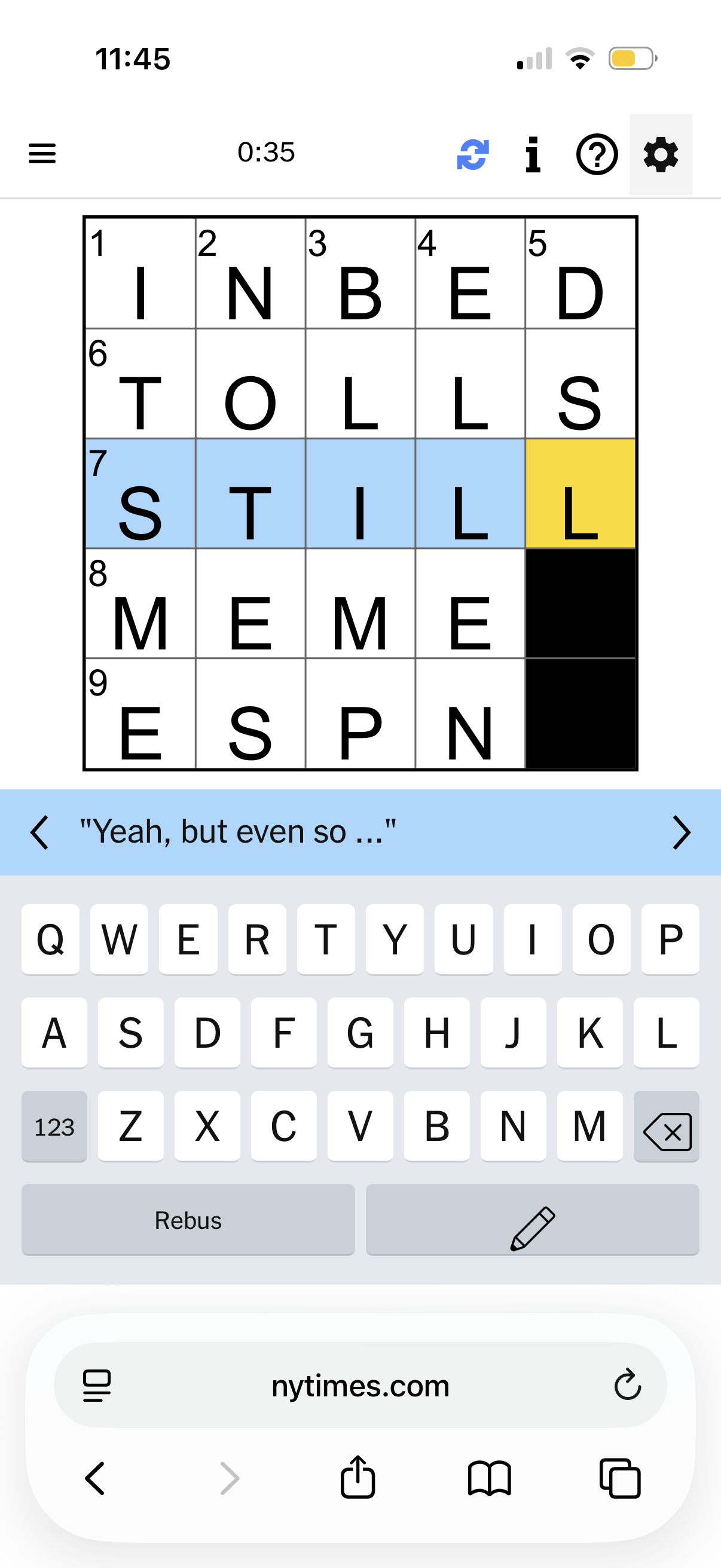 35 seconds today. I’m getting better. I’m getting my speed back.